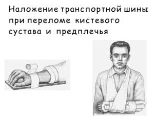 Шина должна быть наложена не только на место повреждения, а захватывая два ближайших сустава, иногда возникает необходимость в обездвиживании трех близлежащих суставов. Делается это для того, чтобы исключить движения в суставах, которые передаются на поврежденную конечность. Кроме того, при переломе конечности в близлежащем суставе может произойти вывих головки сломанной кости.