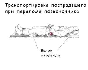При транспортировке на носилках достаточно зафиксировать голову и шею импровизированными валиками из одежды.
