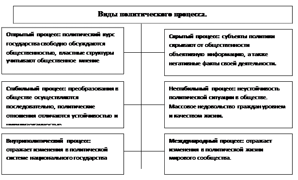 С изменением форм, методов и функций, осуществляемых институтами государственного управления, изменяются и политические процессы. Чаще всего различают четыре стадии (режима) протекания политического процесса.