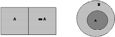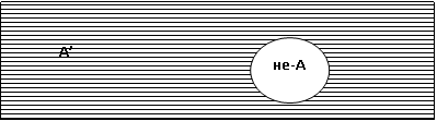 Образование дополнения(отрицание). Дополнением к классу Аназывается класс не-А (А’),который при сложении с Аобразует универсальную область. Эта область представляет собойуниверсальныйкласс и обозначается знаком 1. Чтобы образовать дополнение не-А (или А’), нужно класс А исключить из универсального класса: 1- А =А’. Образование дополнения состоит в образовании нового множества путем исключения данного множества из универсального класса, в который оно входит (рис. 7).