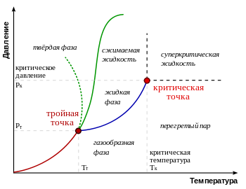 Не все фазы полностью отделены друг от друга линией фазового перехода. В некоторых случаях эта линия может обрываться, оканчиваясь критической точкой (Критическая точка — сочетание значений температуры