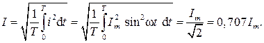 Для характеристики гармонического тока применяется понятие действующего значения (его называют также эффективным или среднеквадратичным). Под действующим значением тока I понимается постоянный ток, который оказывает такое же тепловое действие при прохождении через активное сопротивление, что и переменный ток: