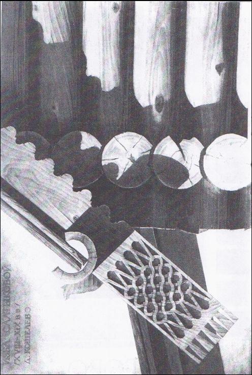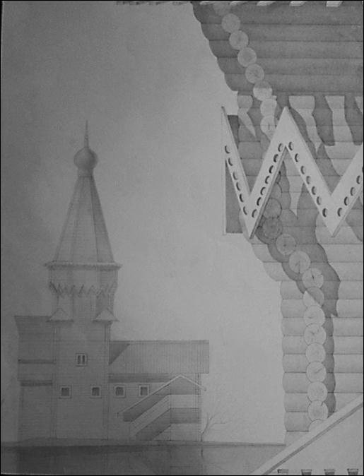 Рис. 28 Отмывка фрагмента и детали деревянной северной церкви