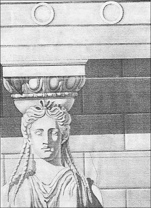 Рис. 36 Отмывка детали портика кариатид Эрехтейона Афинского Акрополя