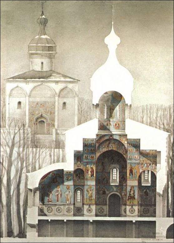 Рис. 41 Отмывка разреза Собора Рождества Богородицы, Вологодская область 1490 г.