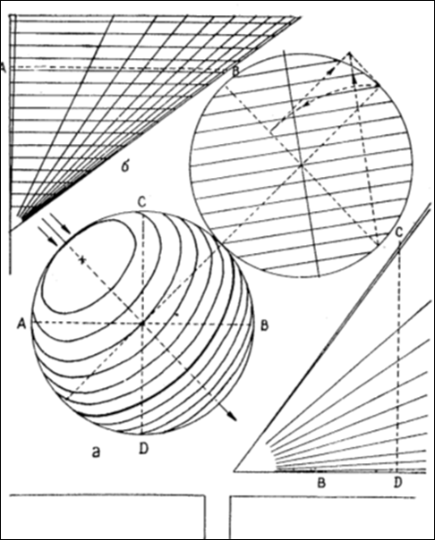 Рис. 47 Схема распределения светотени по поверхности тел вращения