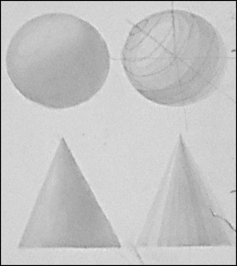 Рис. 12 (б) Примеры тренировочных упражнений по отмывке геометрических фигур (фигуры вращения).