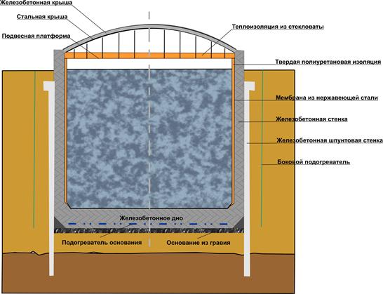 Рис. 13. Схема конструкции заглубленного изотермического резервуара