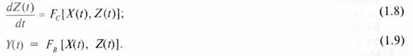 Функции Fc (функция состояний системы) и FB (функция выходов) учитывают не только текущее состояние Z(t), но и предыдущие состояния Z(t1), Z(t — 2), ..., Z(t —u) входов системы.