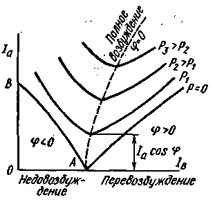 | Рис. 6.36. U-образные характеристики синхронного генератора |