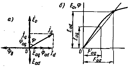 где Xad и Xaq — индуктивные сопротивления обмотки якоря, соответствующие полям продольной и поперечной реакции якоря.