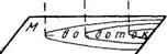 Расстояние между двумя смежными горизонталями в плане называется заложением. По величинам заложений можно судить о крутизне склонов. Для облегчения чтения рельефа и определения направления скатов перпендикулярно горизонталям ставятся бергштрихи (скат-штрихи). Каждая пятая (иногда четвертая) основная горизонталь проводится утолщенной и подписывается в разрыве основанием цифр в сторону падения ската (см. рис. 19, б).