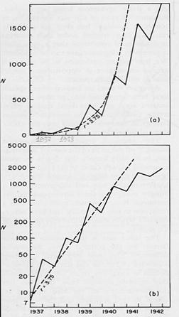 Ими можно описывать любую динамику численности в первом приближении, хотя в чистом виде они встречаются редко.