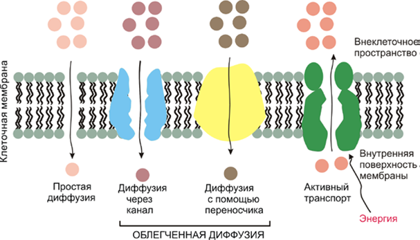 Пассивный транспортпредставлен процессами простой и облегчен-