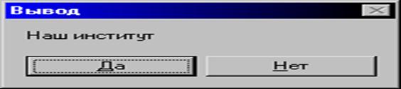 MsgBox("Наш институт", vbYesNo, "Вывод")