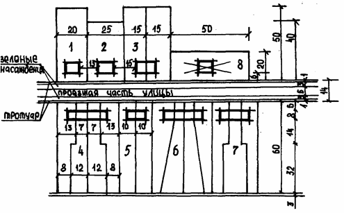 1 Планировка участков при административно-торговых учреждениях. Границы участков должны выходить на улицу под прямым углом, поэтому форма участка может быть неправильной.