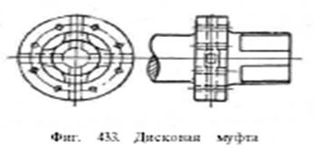 Дисковые муфты (фиг. 433) тоже применяются только в старых установках и притом очень редко.