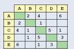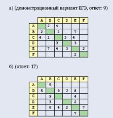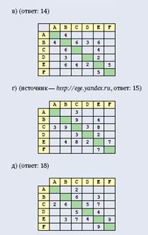 Между населенными пунктами A, B, C, D, E, Fпостроены дороги, протяженность которых приведена в таблице. Отсутствие числа в ячейке таблицы означает, что прямой дороги между пунктами нет.