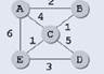 По заданной таблице (весовой матрице графа) определяем, что граф содержит 7 ребер: AB(длиной 2), AC(4), AE(6), BC(1), CD(5), CE(1) и DE(3).