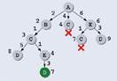 Итак, мы нашли один путь (AED) из Aв D, который имеет длину 9. Пока запоминаем его, однако нужно рассмотреть еще ветку ABC, которая может дать более короткий путь.