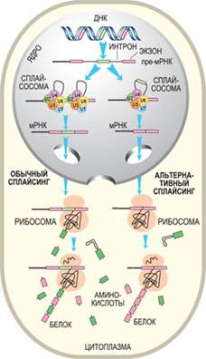 А Сплайсинг и альтернативный сплайсинг в клетках, их значение для синтеза белков