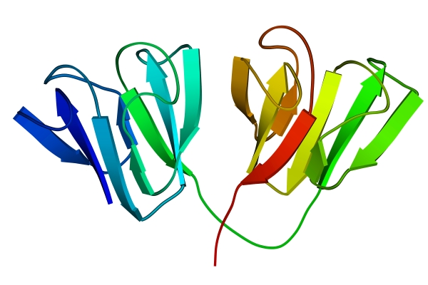 | Рис. 2. Третичная структура миоглобина | Рис. 3. Глобулярные домены в белке хрусталика глаза человека g-кристаллине |