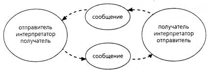 Интерактивная модель (рис. 1.2) в качестве обязательного элемента коммуникативного процесса вводит обратную связь, наглядно демонстрируя кругообразный характер коммуникации: отправитель и получатель сообщения последовательно меняются местами.