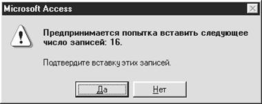 Рис. 17. Предупреждение Access о попытке вставить записи