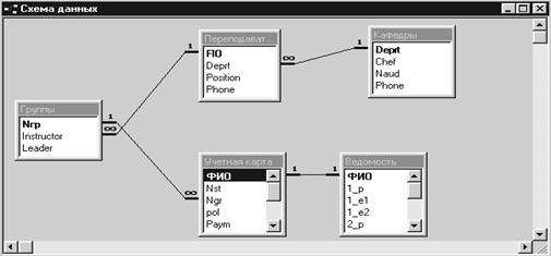Рис. 21. В окне Схема данных отображены все связи между таблицами