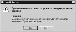 Рис. 22. Предупреждение Access о невозможности изменения данных,