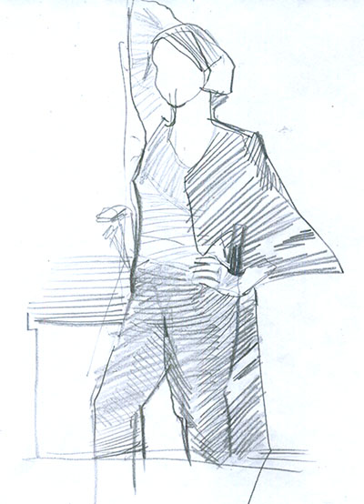 Все работы выполняются на отдельных листах бумаги формата А3. Следует сделать несколько набросков стоящей в одной и той же позе фигуры с разных сторон.