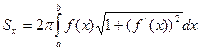 , вращается вокруг оси Ox, то площадь поверхности вращения вычисляется по формуле