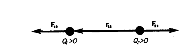 где F12 — сила, которая действуюет на заряд Q1 со стороны заряда Q2, r12 — радиус-вектор, который соединяет заряд Q2 с зарядом Q1, r = |r12| (рис. 1). На заряд Q2 со стороны заряда Q1 действует сила F21 = –F12.