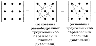 При вычислении определителя 3-го порядка пользуются правилом треугольников (или Саррюса):