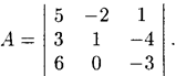полученный вычёркиванием из этой матрицы третьей строки, третьего, четвёртого и пятого столбцов, отличен от нуля: