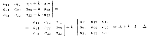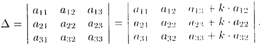 Свойство 6. («Элементарные преобразования определителя»). Определитель не изменится, если к элементам одною ряда прибавить соответствующие элементы параллельного ряда, умноженные па любое число.