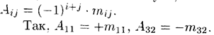 Минором некоторого элемента аij определителя n-го порядка называется определитель n — 1-го порядка, полученный из исходного путем вычеркивания строки и столбца, па пересечении которых находится выбранный элемент. Обозначается mij