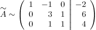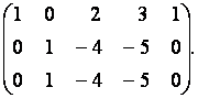 Удалим из этой матрицы третью строку и получим ступенчатую эквивалентную матрицу, количество ненулевых строк которой равно двум: