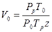 мұндағы: Рр және Тр – резервуардың газдыауалы кеңiстiгiндегi қысым мен температура; Ро және То- қалыпты жағдайдағы қысым мен температура (Ро=0,1МПа, То=273К); z- газдың жоғары сығымдылық коэффициентi,төменгi қысым кезiнде оны 1-тең деп қабылдауға болады.