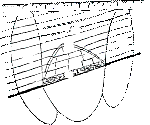 Высота зоны беспорядочного обрушения, в которой разрыхлен- ные породы создают подпор для прогибающихся слоев кровли и поч- вы, невелика и не превышает 4 – 6 кратной мощности пласта. Нередко обрушение пород вообще не происходит в тех случаях, когда ширина выработанного пространства недостаточна для обрушения пород кровли или, когда создаются условия для плавного сближения боковых пород в выработанном пространстве.