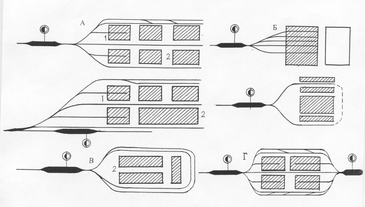 Основные виды схем железнодорожных путей городских промышленных районов.