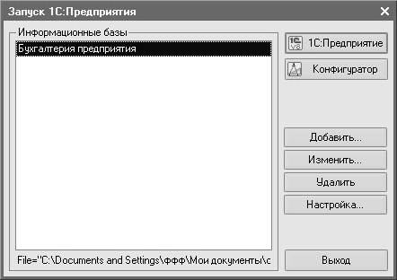 Следующий этап запуска программы «1С:Предприятие 8.1» – выбор информационной базы. Для этого служит выдаваемое на экран окно «Запуск 1С: Предприятия» (рис. 2.1).