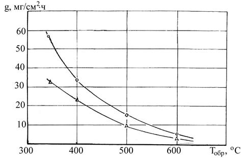 Глубина термоподготовки оказывает значительное влияние на снижение скорости роста вторичных отложений при сжигании как рядового, так и окисленного углей (рис.4.4). При одинаковых значениях тонины помола R90, глубины термоподготовки Тобр, режимах сжигания –температуре сжигания Тт и коэффициенте избытка воздуха в топочной камере aт, было отмечено, что для термоуглей по сравнению с исходными топливами содержание горючих веществ в летучей золе в 2 – 2,5 раза меньше. Это значит, что формирование состава и свойств летучей золы при сжигании термоуглей протекает в окислительной среде. В этом случае практически будут отсутствовать сульфидно-сульфатные эвтектики, являющиеся основой при образовании прочных вторичных натрубных отложений. Полученные результаты хорошо согласуются с исследованиями лаборатории «Термическая подготовка углей» ПИ СФУ при сжигании полукокса канско-ачинского угля.