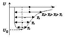 Рис. 1.6. Тепловые колебания атома при различных температурах
