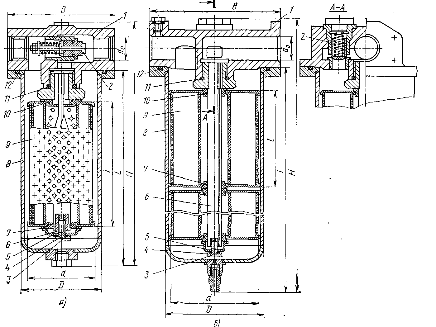 Напорные фильтры обеспечивают полнопоточную фильтрацию. Их применение целесообразно для защиты высокочувствительных к засорению элементов гидросистемы. Такие фильтры металлоемки, а также сравнительно дороги. В напорных гидролиниях устанавливают фильтры типа ФГМ32, Ф10, фильтры напорные по ГОСТ 16026-80 и ГОСТ 21329-75.