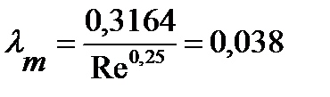 При ламинарном режиме Т.М. Башта для определения коэффициента гидравлического трения λ рекомендует при Re <2300 применять формулу, а при турбулентном режиме течения жидкости в диапазоне Re = 2300…100 000 коэффициент λ определяется по полуэмпирической формуле Блазиуса