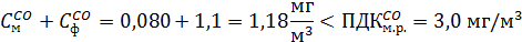 В нашем примере условие соблюдения ПДВ не выполняется для диоксида азота и сажи. Для оксида углерода предельно-допустимый выброс составит (есть соблюдение ПДК по СО):