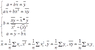 Одним из методов нахождения коэффициентов регрессии а и в является метод наименьших квадратов (МНК).