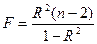 Величина F имеет распределение Фишера с двумя степенями свободы ν1=1, ν2=n-2.
