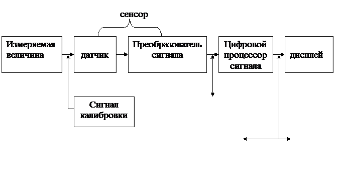 для увеличения амплитуды отводимых сигналов. Далее – приборы, предназначенные для обработки и регистрации полученной информации: цифровой процессор сигналов, дисплей, записывающее устройство. На рис.1 показана обобщённая измерительная система, применяемая для получения информации о состоянии организма с помощью сенсоров.